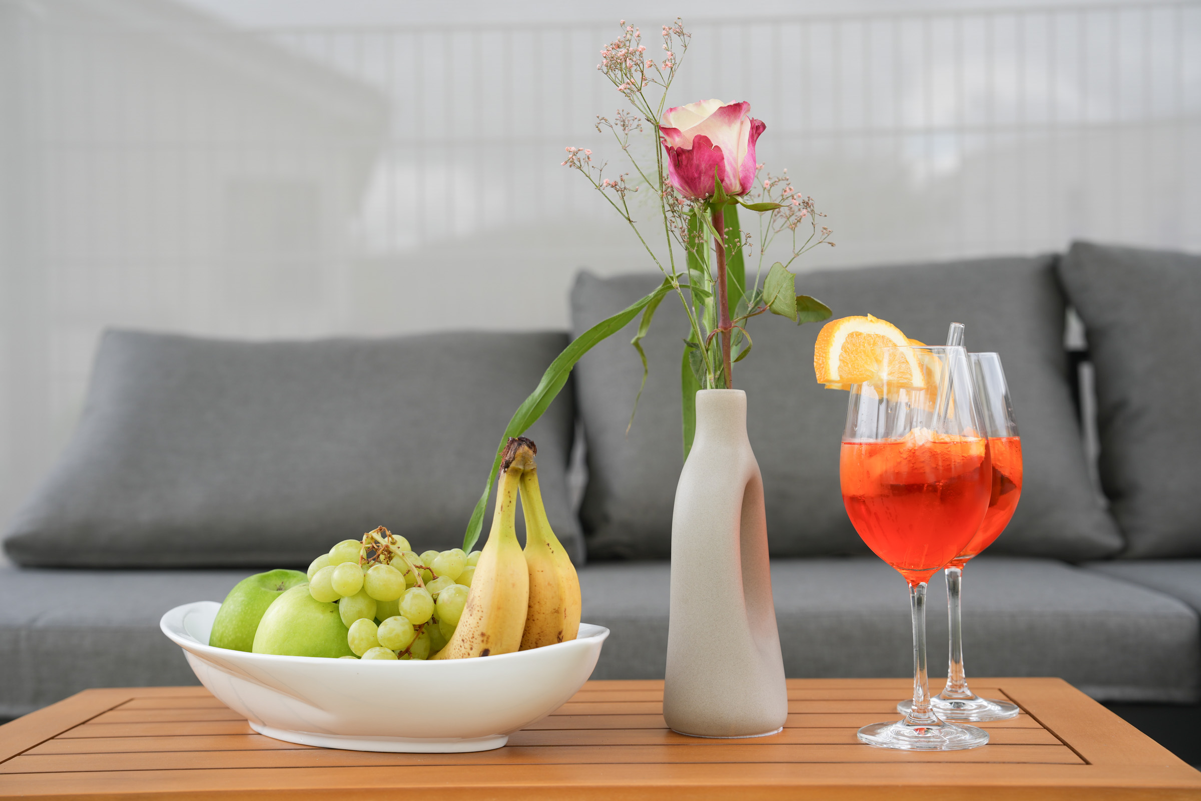 Die Appartements befinden sich im Erdgeschoss eines modernen Mehrfamilienhauses am Rande eines gewachsenen, verkehrsberuhigten Wohngebiets. Alle Wohnungen sind barrierefrei gestaltet und über die Autobahnanschlussstelle Freiburg-Süd sehr gut erreichbar. Jede Unterkunft verfügt über eine großzügige Terrasse mit Blick auf den Schönberg und den nahegelegenen Weinberg. Dieser bietet nicht nur einen traumhaften Ausblick auf Freiburg und den Schwarzwald, sondern lädt auch zu entspannten Spaziergängen ein. Freiburg-St. Georgen, bekannt für seine lange Weinbautradition, gilt zudem als Tor zum Markgräflerland. Nutzen Sie gerne unseren E-Bike-Verleih für erlebnisreiche Fahrradtouren oder genießen Sie Wellness und Entspannung im nahegelegenen Eugen-Keidel-Mineral-Thermalbad – auch an regnerischen Tagen.